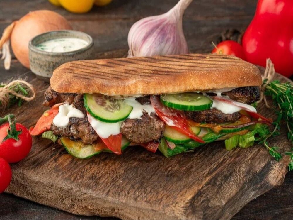 Армянская версия с острым, пряным вкусом. Ключевые особенности: маринованное в армянских специях мясо (свинина), хлеб матнакаш, маринованные и свежие овощи, зелень, армянские соусы.